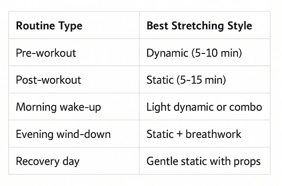 Dynamic vs. Static Stretching – When to Use Each in Your Practice